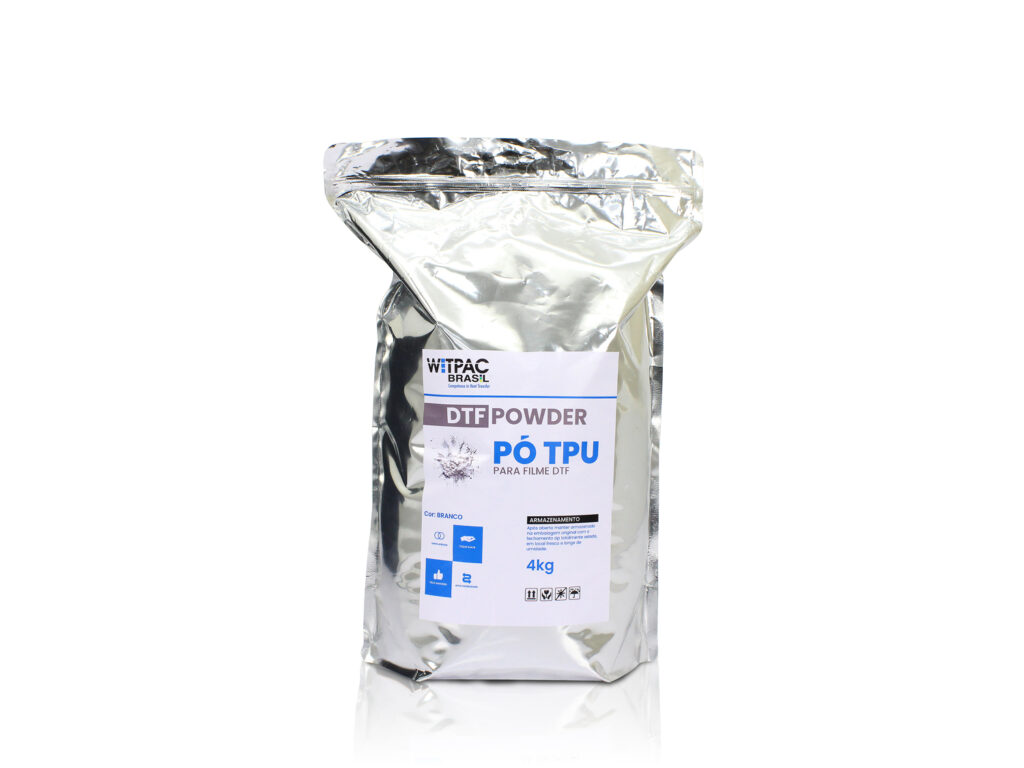Utilização – componente utilizado sobre a camada de tinta impressa no filme DTF. Atua como agente de fusão, garantindo a aderência eficiente da estampa ao tecido durante a prensagem térmica.